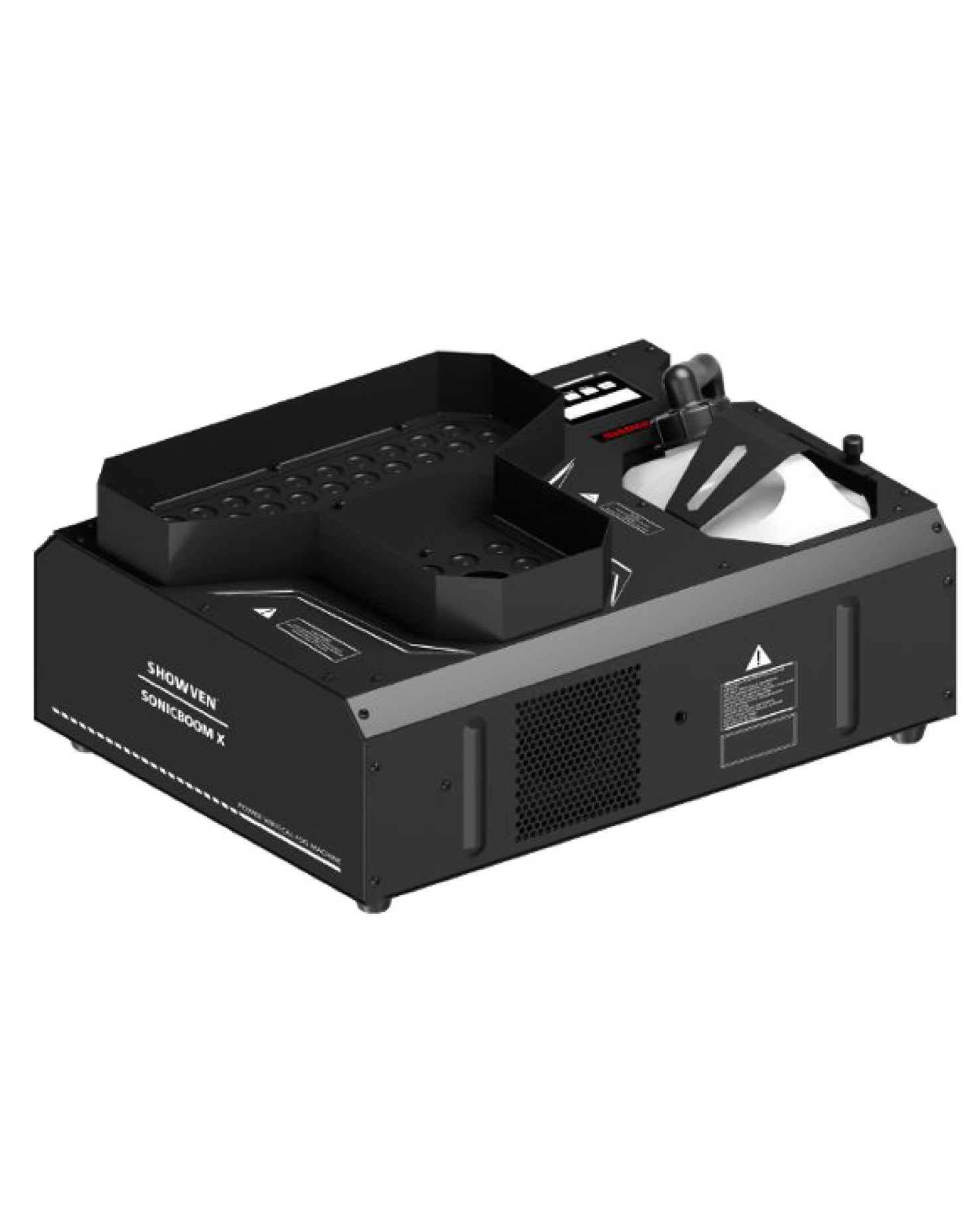 DMX 制御で勢いのあるCO2に似たスモーク効果を演出する事が可能です。SONICBOOM X SMOKEJETは、発煙だけでなくLEDで煙をカラフルに色付けする事も可能です。RGBのLEDを組み合わせて様々な色を発色させて、煙効果を演出します。