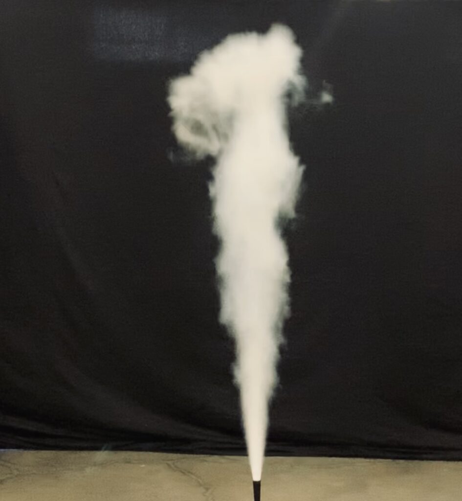 リキッド仕様では、キャニスター(供給ポンプ)を使用して本体側に専用液(アイソパー)を供給し、運用します。ガス仕様では、カセットボンベから燃料を供給することで、ファイアーボール効果を発生させることができます。